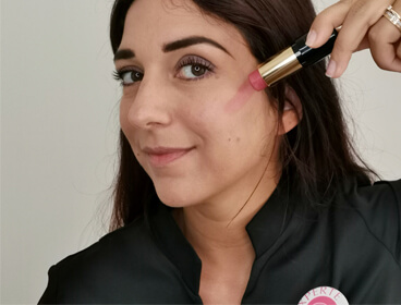 Ensuite, je viens rehausser mon teint avec Teint Idole Ultra Wear Stick Blush 01 Ambitious pink de Lancôme. Ce stick crémeux est pratique : il suffit de faire un trait sur chaque pommette puis de l’estomper au doigt. Sa couvrance modulable permet de créer une intensité sur mesure pour un teint bonne mine naturel.