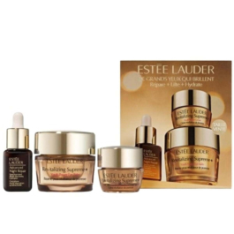 Le coffret en édition limitée contient :• Sérum Complexe Multi-Réparation Synchronisée Advanced Night Repair, format voyage (7ml)• Crème Révélatrice de Jeunesse Revitalizing Supreme+, format voyage (7ml)• Baume Yeux Révélateur de Jeunesse Revitalizing Supreme+, format vente (15ml)Un coffret de 3 soins anti-âge, comprenant un Baume pour les yeux en format vente, le Sérum Advanced Night Repair et la Crème Révélatrice de Jeunesse en format voyage.Une routine beauté complète : fermeté, radiance et une peau d'apparence plus liftée. Découvrez ces formules haute performance pour renouveler, renforcer et hydrater en profondeur la peau.Le Sérum Advanced Night Repair aide la peau à paraître plus lisse, plus jeune, plus radieuse et plus uniforme avec une utilisation continue.Le Baume pour les yeux Revitalizing Supreme+ améliore significativement la fermeté et l'élasticité pour un contour des yeux lissé, décongestionné et d'apparence lifté. Réduit l'apparence des rides. Illumine et défroisse le regard. Pour un coup de pouce supplémentaire, il peut également être utilisé en guise de masque pour les yeux une fois par semaine.La Crème hydratante Revitalizing Supreme+ améliore considérablement la fermeté et l'élasticité pour une sensation de peau plus ferme et un aspect plus lifté.CRÉONS L'AVENIR DE LA BEAUTÉ ENSEMBLE.Veuillez recycler ce carton.INGRÉDIENTS PUISSANTS POUR LA JEUNESSEExtrait de la fleur d'Hibiscus à 99% d'origine naturelleNos scientifiques ont découvert que les fleurs d'Hibiscus sinensis, lorsqu'elles sont récoltées tôt dans la journée, libèrent le maximum de leur potentiel et stimulent la production de collagène. Pour une efficacité décuplée, nous récoltons cette fleur le matin. Le process de fabrication prend ensuite 83 jours de la récolte au produit fini.Extrait de cellules souches de CactusDérivé du cactus figuier de Barbarie, cet extrait puissant de cellules souches végétales est reconnu pour ses bienfaits sur le renforcement de la barrière cutanée.Acide hyaluroniqueSuper apaisant. Ultra hydratant. Chaque molécule d'AH aide la peau à retenir l'humidité tout en favorisant sa capacité à se réhydrater naturellement.Extrait de MoringaLa plante Moringa apelée « arbre de vie » est réputée pour sa teneur exceptionnelle en nutriments et vitamines. C'est l'un des ingrédients les plus puissants jamais découvert pour révéler la jeunesse de la peau.Boost de CollagèneNotre formule associe nos ingrédients d'origine naturelle à notre technologie qui booste le collagène de la peau, pour ranimer tout son pouvoir et la rendre plus ferme, plus liftée.