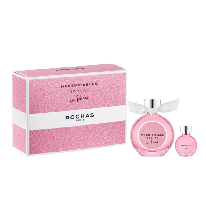 Ce coffret contient une Eau de Parfum Mademoiselle Rochas in Paris 50ml ainsi qu'une miniature 4,5ml.PLUS PARISIENNE QUE JAMAISDéambuler au cœur des plus belles avenues du monde, prendre un café en terrasse ou admirer la vue en haut de Montmartre, Mademoiselle Rochas in Paris croque la vie et la ville à pleines dents !UN SILLAGE IRRÉSISTIBLEL'eau de parfum Mademoiselle Rochas in Paris est un Chypre Floral dont le sillage reflète la joyeuse impertinence parisienne.L’ouverture fruitée où l’alliance juteuse de poire et framboise est renforcée par la fraîcheur acidulée de la bergamote, évoque une allure typiquement parisienne, résolument chic.En cœur, un grand bouquet féminin, de jasmin et de rose sublimé par un velours d’orchidée apporte une facette très couture.En fond, la douceur lactée d’un bois de santal crémeux et la sensualité épicée de la vanille laissent place à un sillage incontestablement élégant et addictif.PÉTILLANTE ET SOPHISTIQUÉELe flacon aux courbes rondes s'habille d'une nouvelle nuance de rose éclatant.Les paillettes, écho à la personnalité pétillante de Mademoiselle Rochas, ajoutent une touche de lumière et de joie.Made In France, cette fragrance a été créée grâce au savoir-faire français.