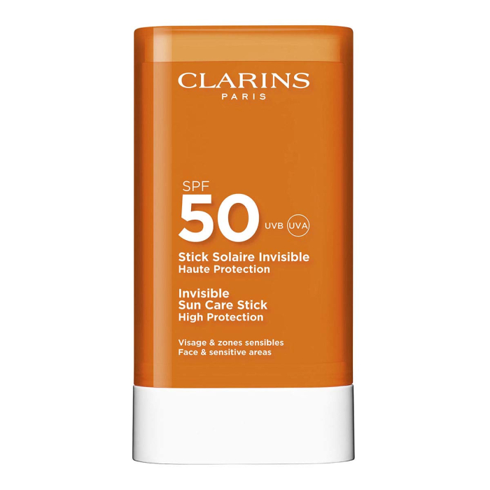 A la ville, comme à la plage ou à la montagne, le Stick Solaire Invisible est l’indispensable à avoir. Nomade, il se glisse n’importe où grâce à son format pocket* qui le rend idéal pour les retouches express. Son application est rapide et ultra-pratique. *pocheEn un seul geste, il protège efficacement les zones sensibles exposées et délivre avec précision une texture invisible et non grasse. Grâce à son fini transparent, il peut s’appliquer même sur le maquillage sans le déplacer et laisse un toucher sec et velouté. Sa formule intègre le [SOLAR PROTECT COMPLEX] qui garantit une protection large spectre contre les rayons UVA/UVB et le BLUE LIGHT PROTECTION qui protège la peau de la lumière bleue. Le [Solar Protect Complex] prévient du photovieillissement pour préserver la jeunesse et la beauté de la peau. Il offre une protection large spectre contre les rayons UVA/UVB et une double action anti-rides et anti-oxydante grâce au puissant duo d’extrait de cacao bio et de dérivé de vitamine E. - L'extrait de cacao bio favorise la synthèse du collagène et de l'acide hyaluronique pour une action anti-rides et hydratante. - Le dérivé de vitamine E aide à protéger la peau du stress oxydatif pour une efficacité sur l'apparence des signes de l'âge.Formulé avec l'extrait d’aloe vera et l'huile d’argan bio, les solaires Clarins protègent et hydratent la peau pour révéler le plus beau des bronzages.